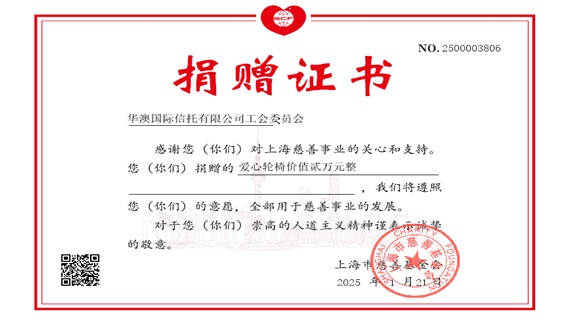 2025年1月,華澳國際信托有限公司工會委員會捐贈價值2萬元的愛心輪椅,為慈善事業(yè)的發(fā)展做出貢獻(xiàn)。